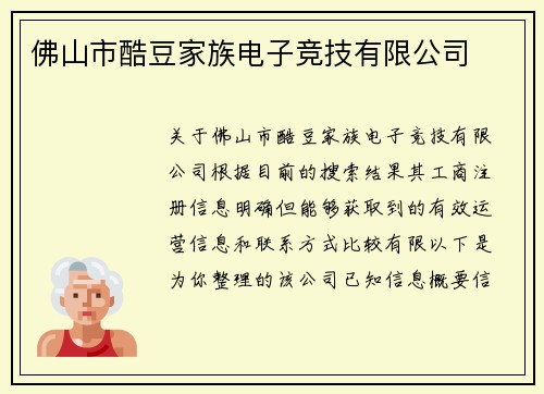 佛山市酷豆家族电子竞技有限公司