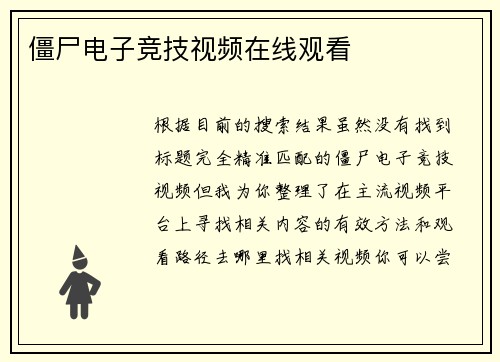 僵尸电子竞技视频在线观看